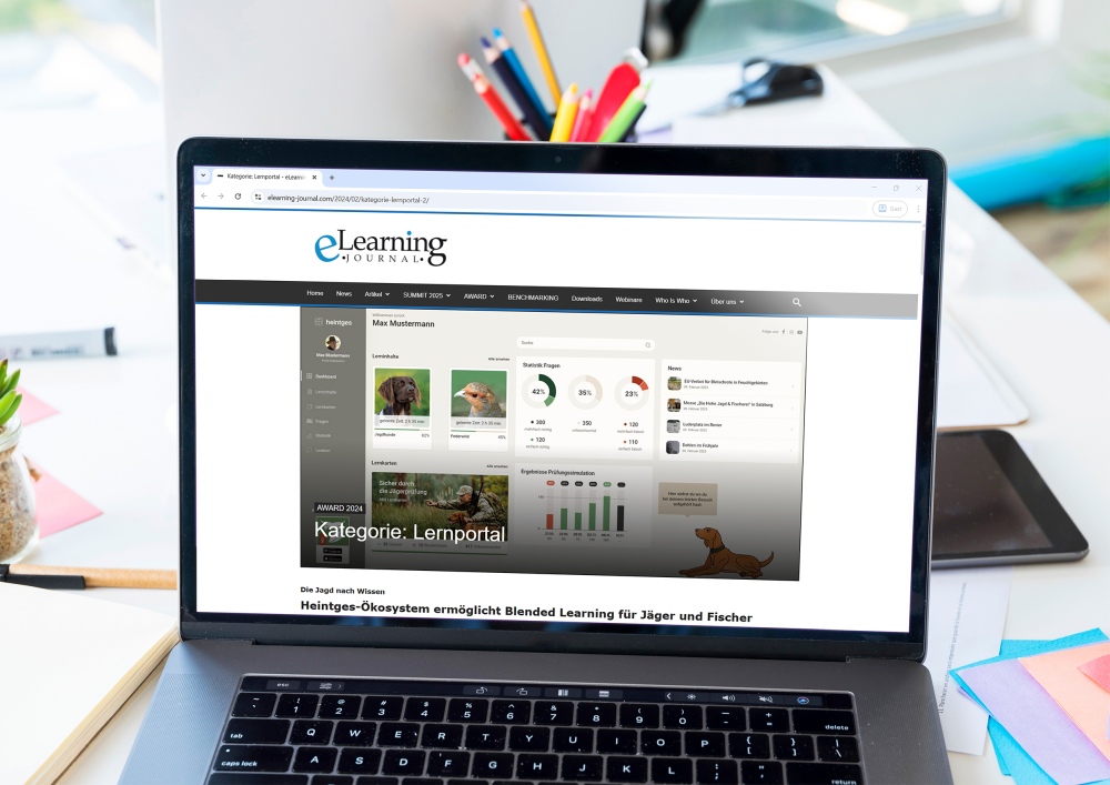 Wir haben im Jahr 2024 den eLearning Award in der Kategorie „Lernportal“ erhalten. In Kooperation mit Heintges Lehr- und Lernsystem GmbH wurde das Projekt „Heintges Jagdtrainer“ ausgezeichnet.