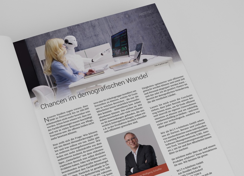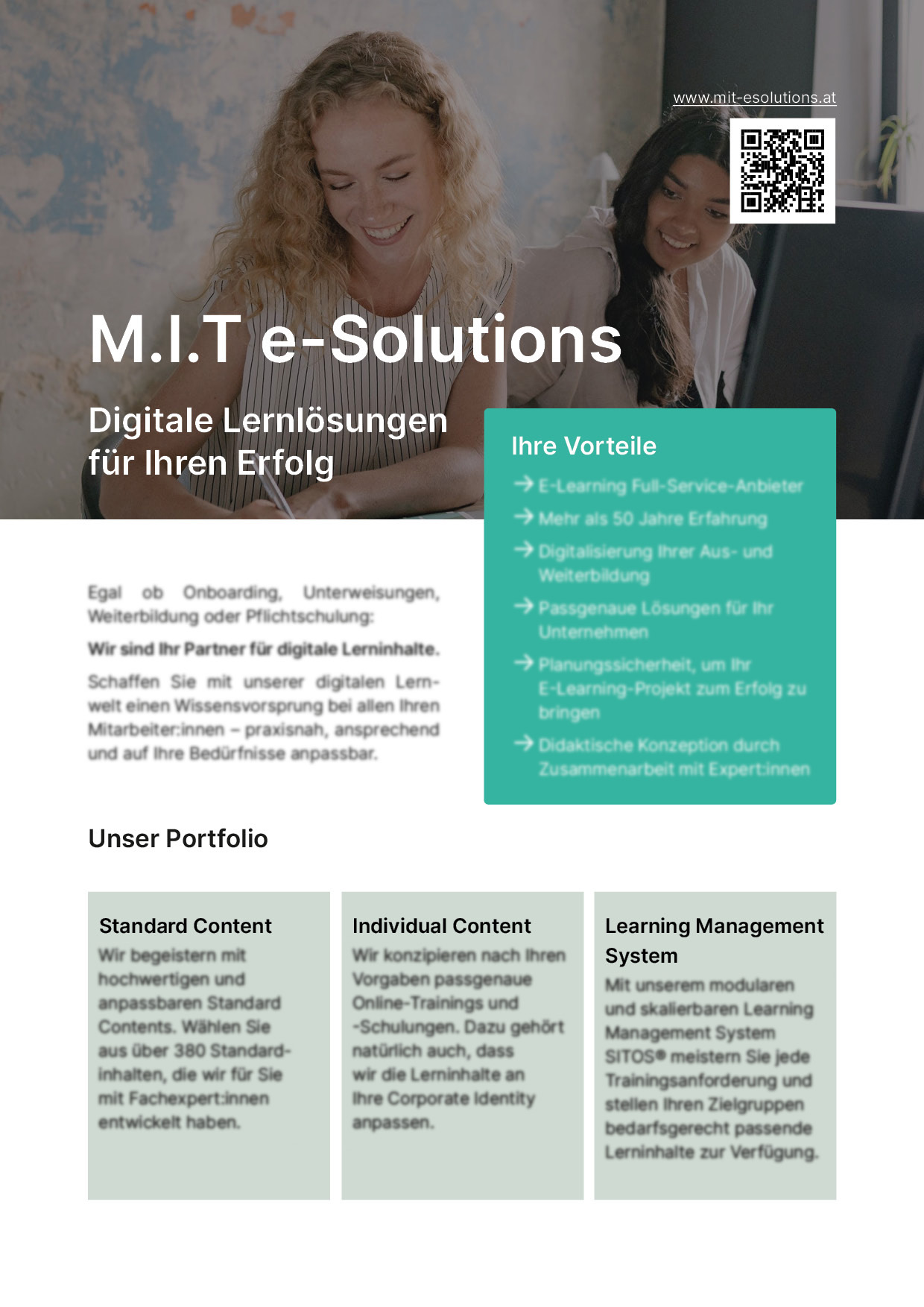 Als M.I.T e-Solutions GmbH unterstützen wir Unternehmen dabei, KI und E-Learning sinnvoll einzusetzen, um langfristig wettbewerbsfähig zu bleiben.